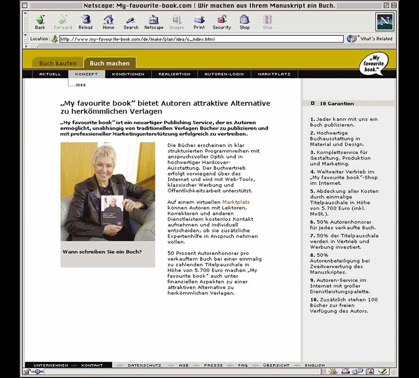 „My favourite book“ was the world's first attempt at combining the potential of the World Wide Web and new digital printing techniques with a view of superseding the international book publishing business through a revolutionary publishing service for authors
